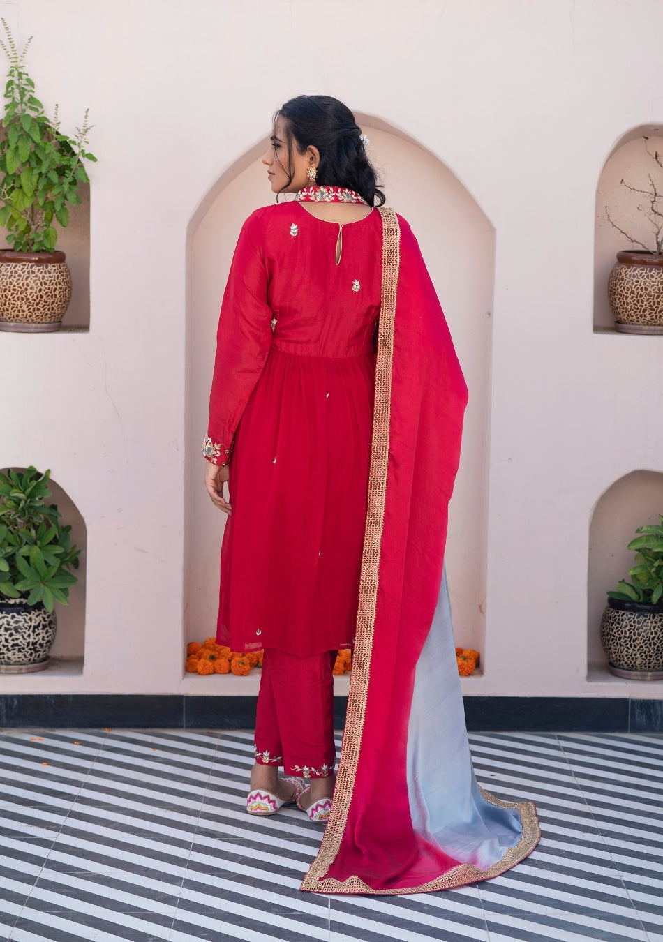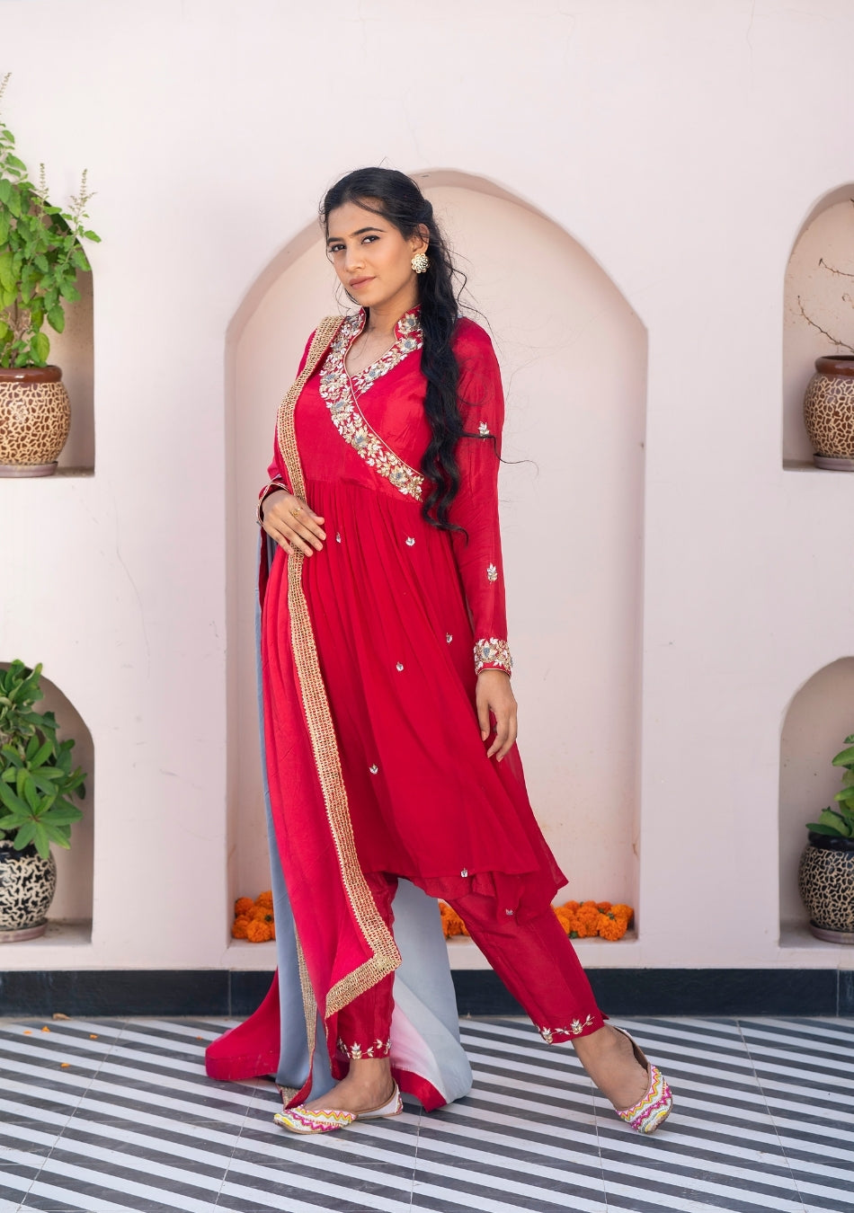 From our Adab Collection, this red kurta set blends tradition with timeless beauty. Embellished with fine detailing and complemented by a graceful dupatta, it’s a statement outfit for every special moment. ♥️